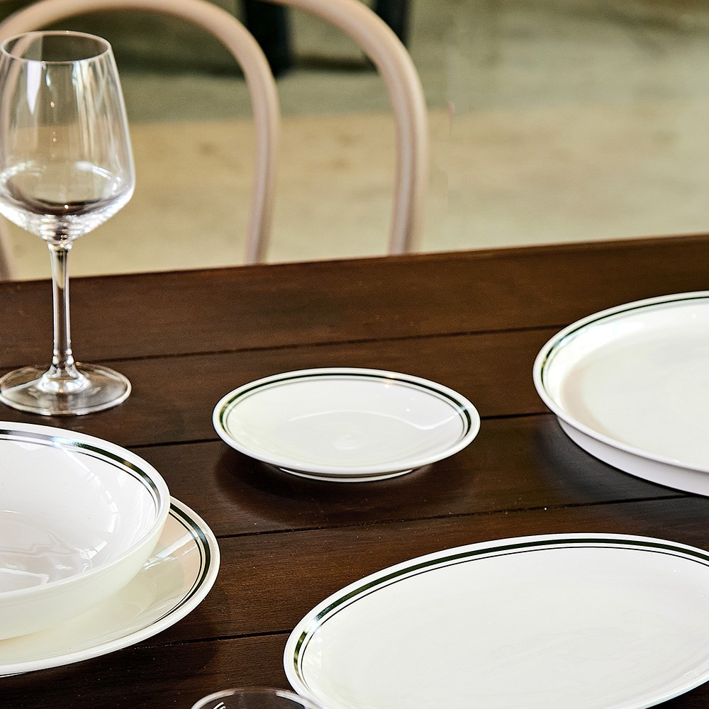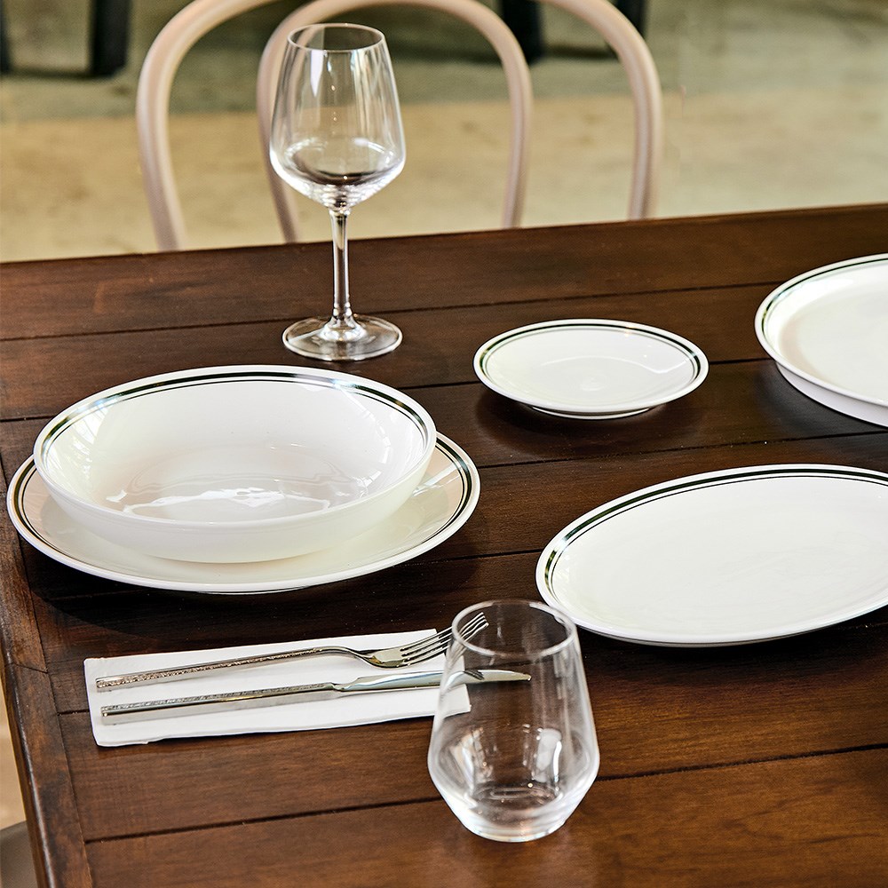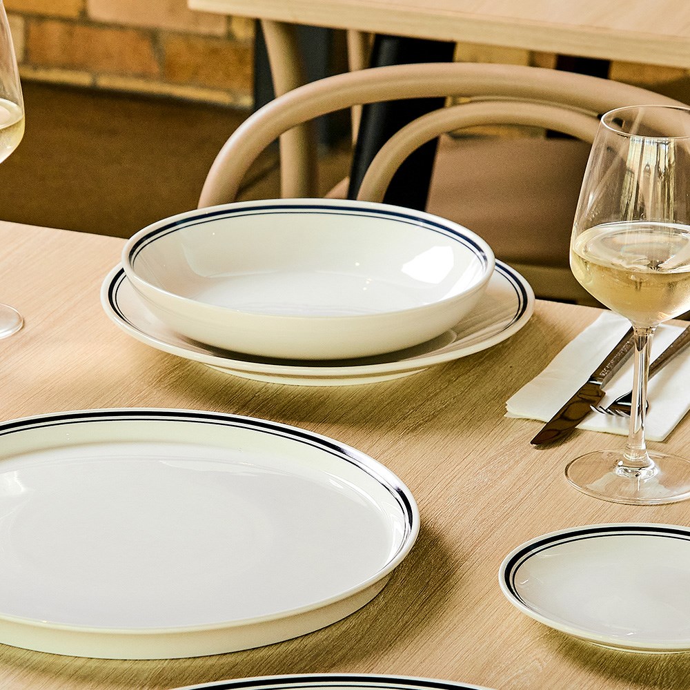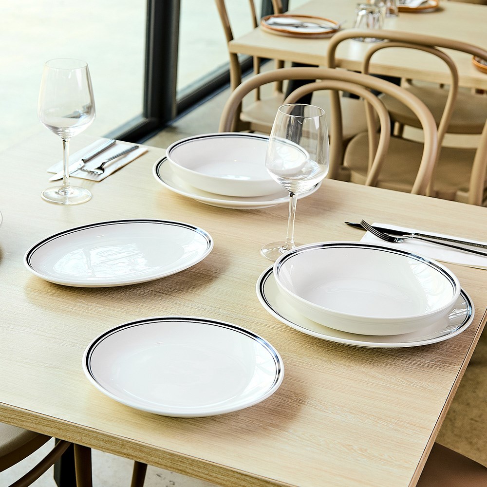 Inspired by the inviting warmth of classic diners and the understated sophistication of Parisian bistros, the Plaza Coupe Plates by Pro.mundi add a timeless touch to any table setting. Their coupe shape brings both character and elegance to modern hospitality environments, making then ideal for relaxed yet refined dining. Available in Midnight Blue and Garden Green, and offered in three practical sizes.