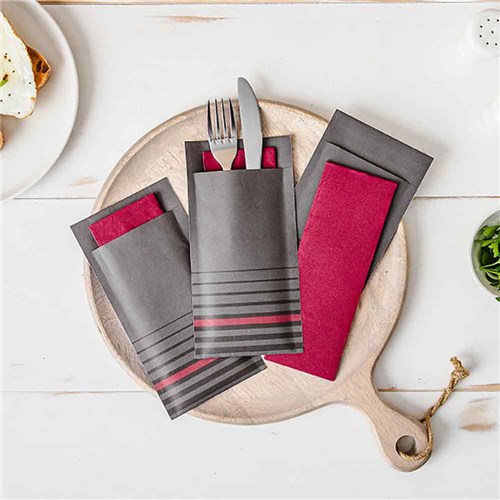 Isi Paper Cutlery Pouch Grey/ Bordeaux 200x100mm Pro.mundi