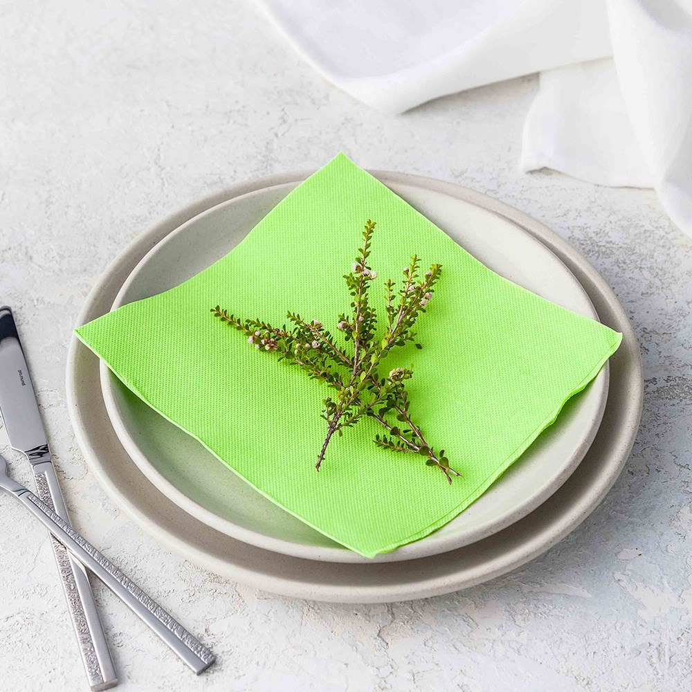 With a convenient 1/4 fold and a generous 380x380mm size, each pack contains 50 napkins designed to elevate your dining presentation. Coordinate seamlessly with matching table covers, runners, and placemats from the Lisah range to create a cohesive and inviting look. Available in multiple colours, including this bold Green Apple shade, to suit a variety of themes and occasions.