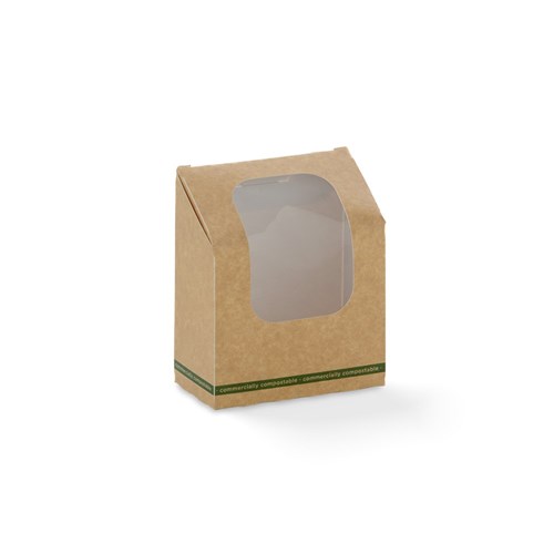 On The Go Rectangular Sandwich Box PLA Window Brown 130x75x80mm Detpak 3452393