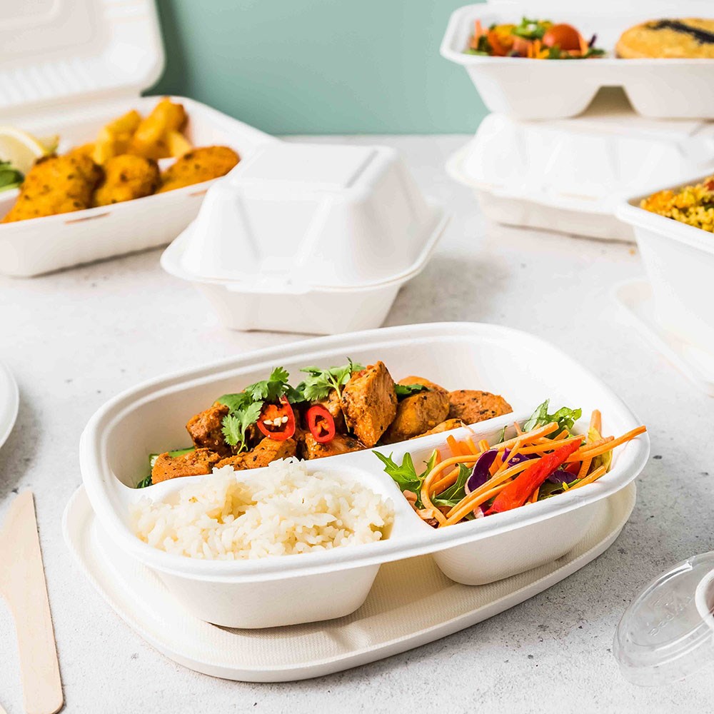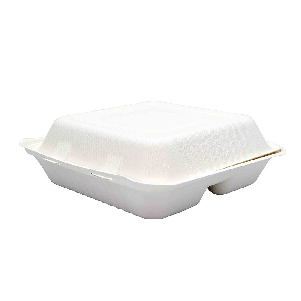 Sugarcane Clam Two Compartment White 250x163x60mm Earth Essentials 3445748