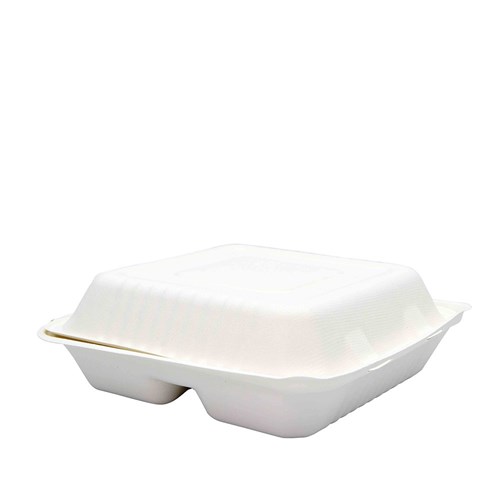 Sugarcane Clam Three Compartment White 229x229x81mm Earth Essentials