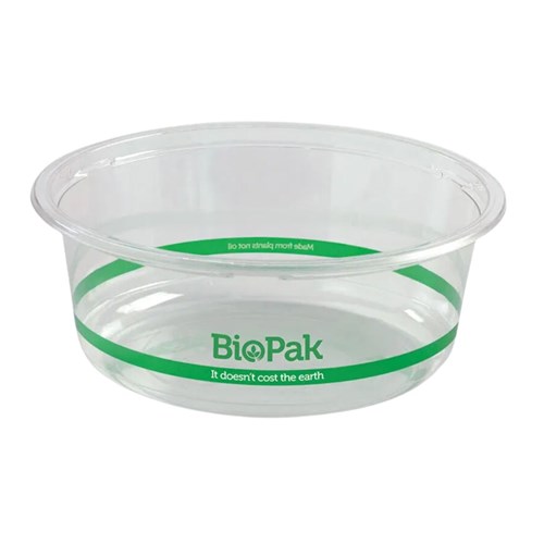 BioBowl Clear 600ml Green Line BioPak is a sustainable, plant-based bowl made from bioplastic, offering an eco-friendly alternative to traditional plastic. With a 600ml capacity, this bowl is certified industrially compostable, making it an ideal choice for eco-conscious food service providers.
