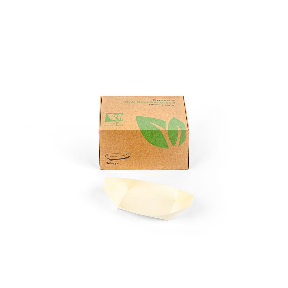 This 170x85mm food boat in the EziServe range by Earth Essentials is a versatile and eco-friendly serving solution designed to meet the diverse needs of the food service industry. Crafted from high-quality, sustainable and biodegradable materials, this food boat offers an environmentally responsible alternative to traditional serving methods. Its generous size makes it ideal for holding a variety of snacks, from crispy fries and succulent seafood to sweet churros and fresh fruit, accommodating larger portions for a satisfying serving experience.