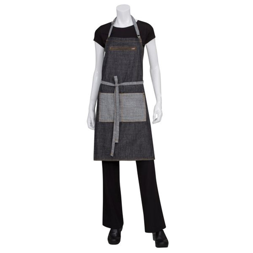 Manhattan Bib Apron With Pockets Black Denim 860x760mm Chef Works