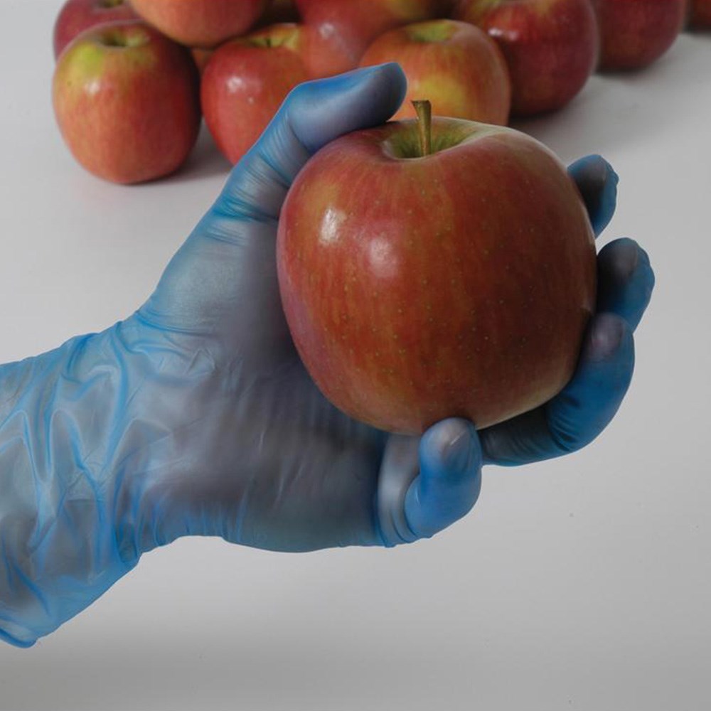 • Blue vinyl gloves provide easy identification