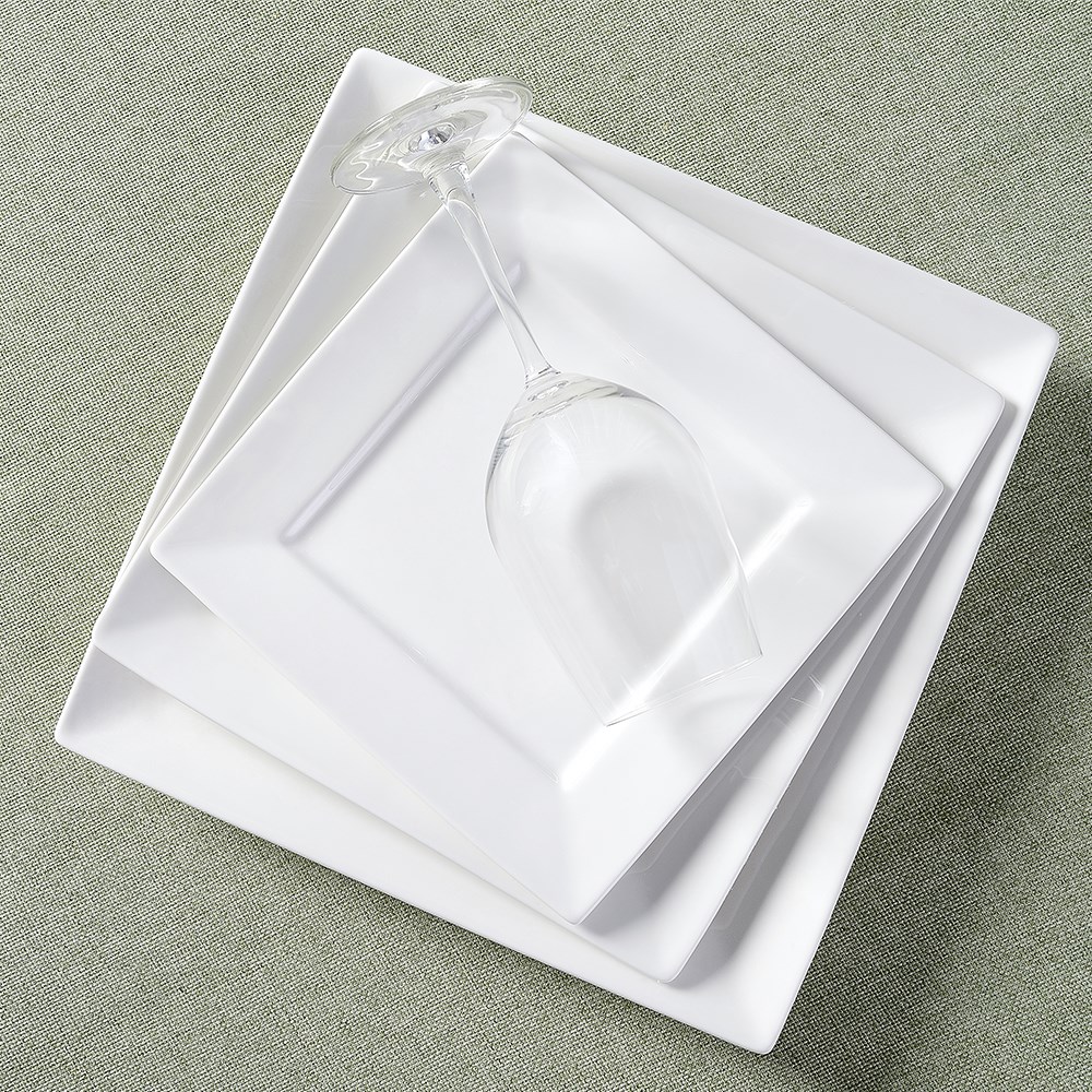 This Echelon Square Plate 258mm White by Pro.mundi is a practical tableware solution for restaurants, cafes, catering events, banquets, weddings, and healthcare. The diameter is 258mm. This classic plate is high quality and functional product with a minimum environmental impact. Plus, since this chic design plate is made from commercial-grade porcelain, ensures easy cleaning and maintenance.
