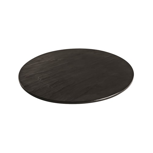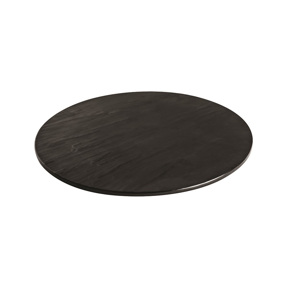 Taroko Round Black Platters. Taroko melamine platters look and feel like slate on one side and have a smooth surface on the other. Ryner Melamine is designed for hospitality use.