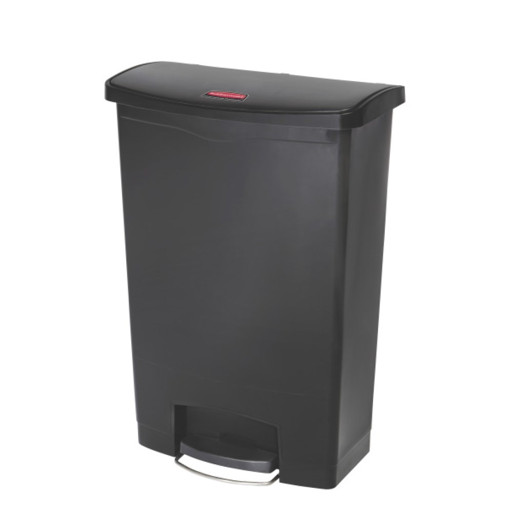 The Rubbermaid Commercial Slim Jim® Front Step-On Container has a small footprint and offers increased pedal clearance for easy foot access and hands-free waste disposal. A tight-fitting lid has a controlled close to reduce noise and an internal hinge design to prevent wall damage. Offering easy maintenance, this step-on container features a liner retainer band to securely hold liner bags.